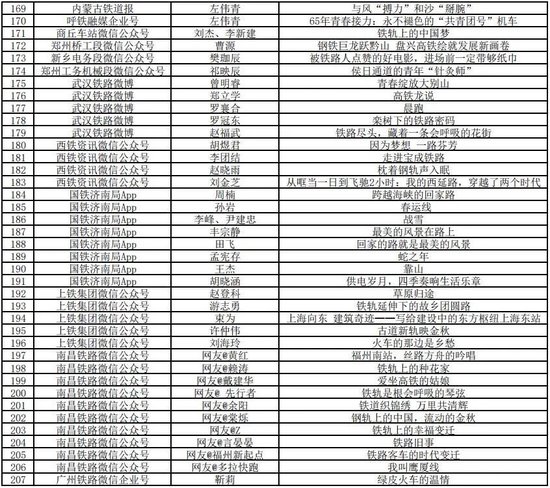 打印:12月30日,由中宣部文明创建局、中央网信办网络传播局、中国作协创联部、中国国家铁路集团有限公司党组宣传部联合举办的“我的铁路风景”故事汇原创美文征集展示活动优秀作品名单公布,共252件。