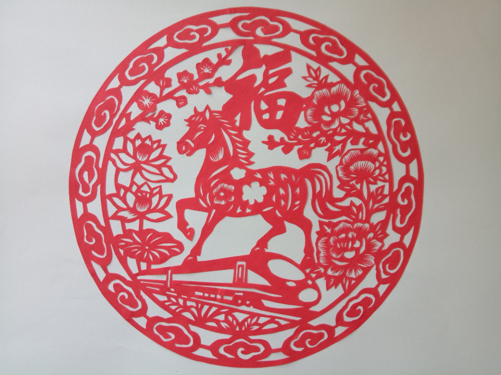 剪纸《马踏春归,铁运呈祥》。中国文明网网友@金亮 摄